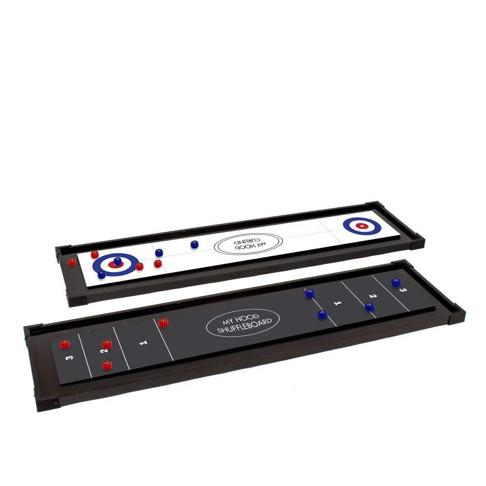 My Hood Shuffleboard er et sjovt og socialt spil for hele familien, hvor det gælder om at score point ved at curle sine pucks ned i modstanderes pointzone.
