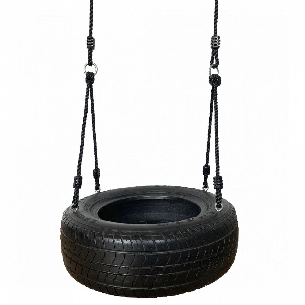 NORDIC PLAY Dækgynge fremstillet af malede genbrugsdæk og er inklusiv justerbart sort reb. Gyngen er klar til montering på gyngestativet i haven.