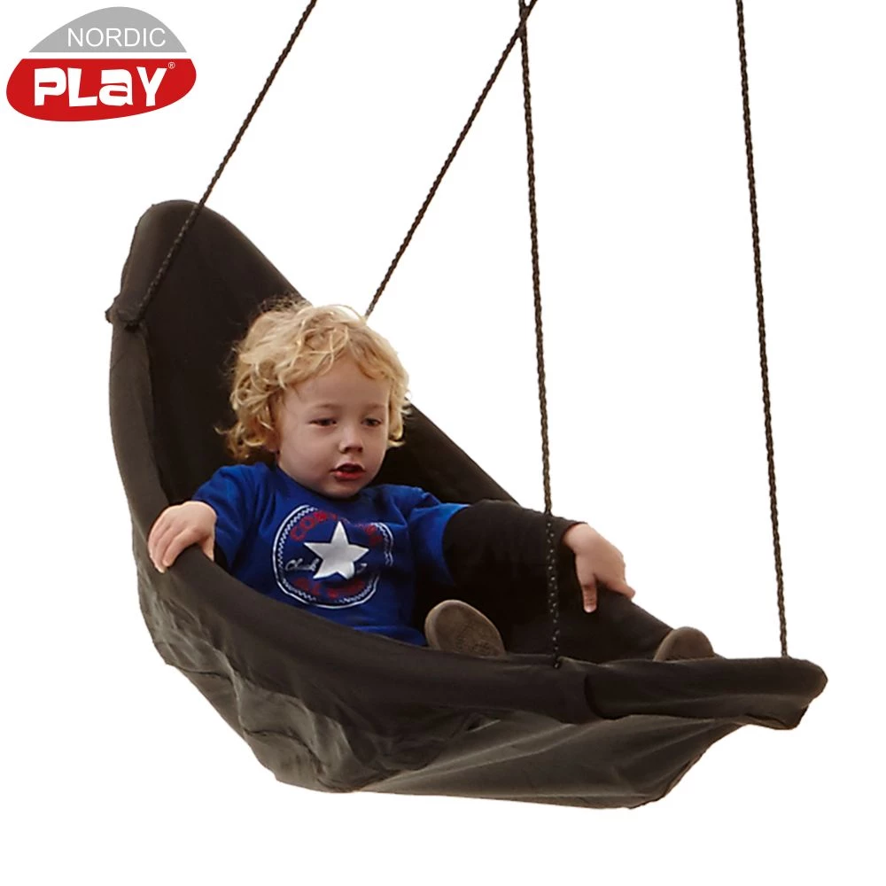 Fremstillet i kraftig nylon og stål med justerbart reb i begge sider. Stålramme Ø25 x 1,2 mm. Gyngen må kun benyttes af børn siddende eller liggende. Må benyttes af max. 2 børn ad gangen.