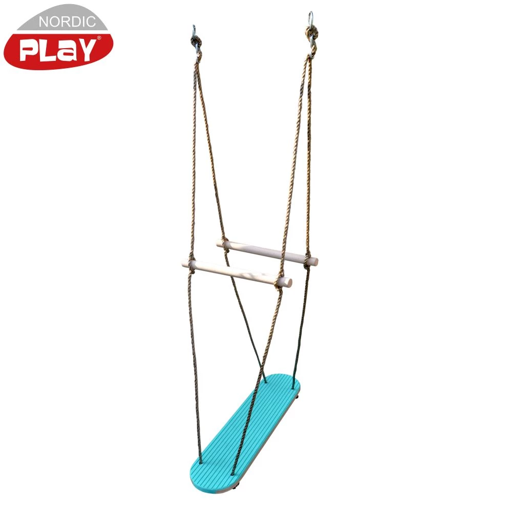 NORDIC PLAY Skateboardgynge med reb. En udfordrende gynge for seje børn. Gyngen anvendes stående og er med til at forbedre balance, motorik og vippereaktioner. Max. belastning 50 kg. Størrelse 80 x 20 cm. Højde 160 cm. Godkendt iht. EN71-1,2,3 & 8. CE godkendt.