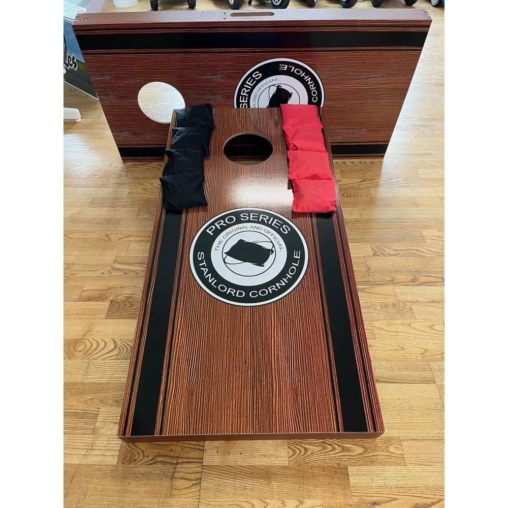 Cornhole leveres med justerbar fødder, så de kan stå lige, selv på skæve gulve.